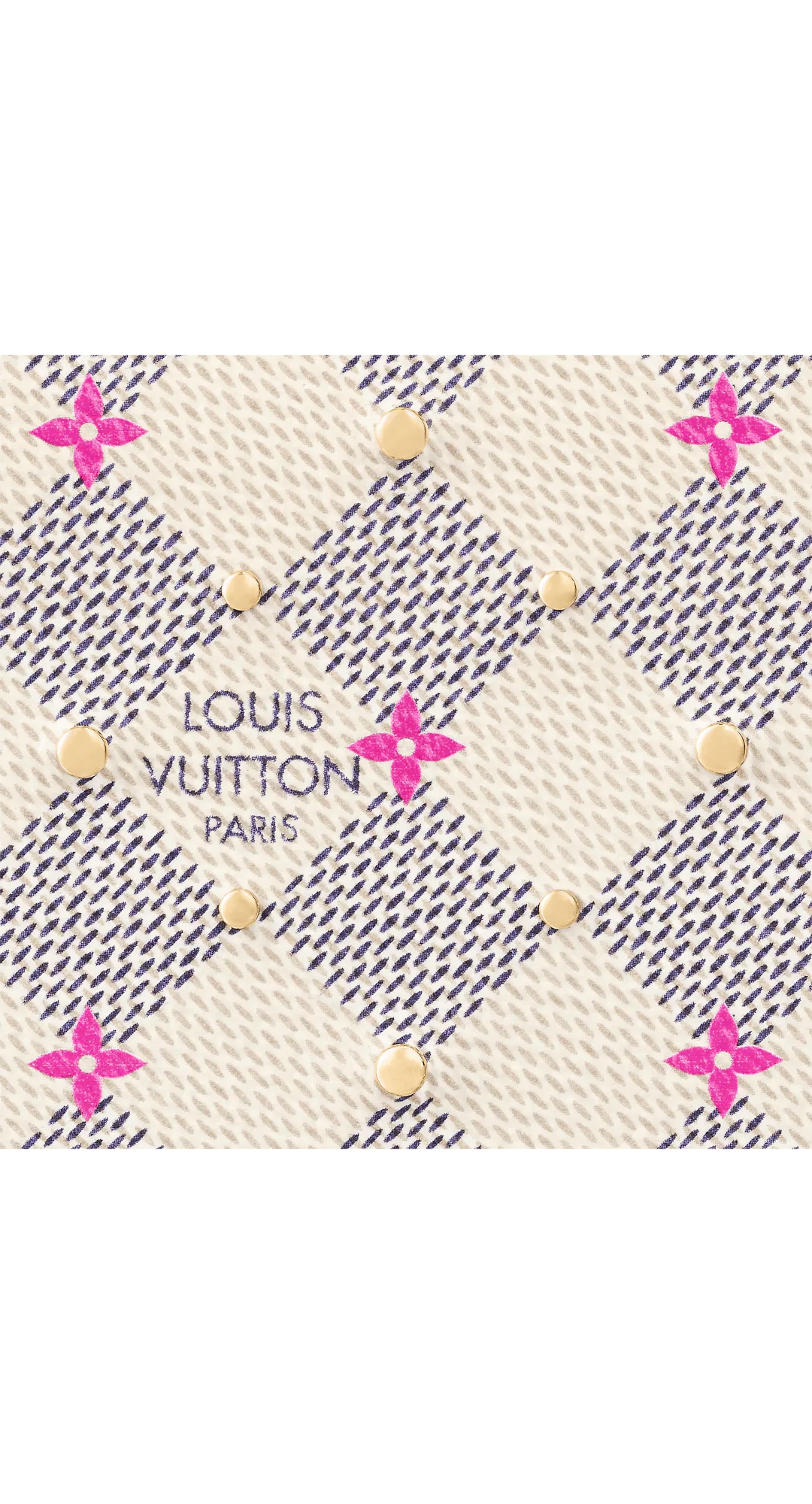 • “Zippy Wallet” reinterpreted for the “Damie Azul Studs” collection. Damie Azul canvas with fuchsia pink floral motif print and small gold-coloured studs. The contrasting pink lining that emerges when you open the reassuring round zipper and the interior with multiple compartments, pockets and card slots are also attractive.
