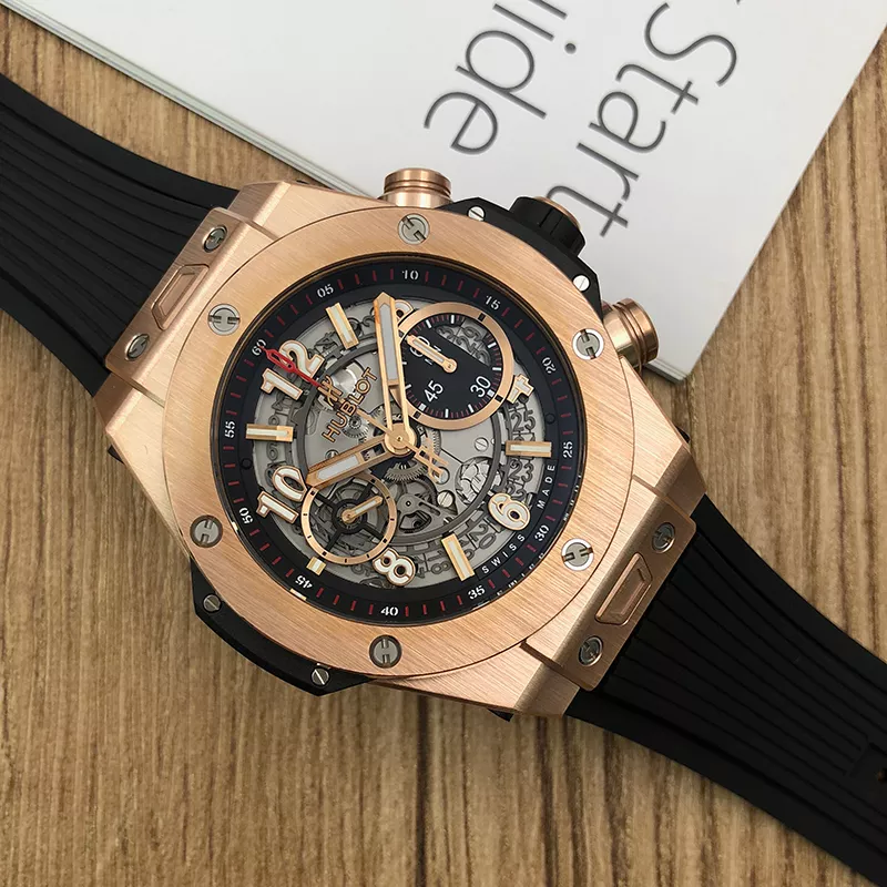 Bezel: Satin-coated and polished 18-carat king gold with 6 H-shaped titanium screws