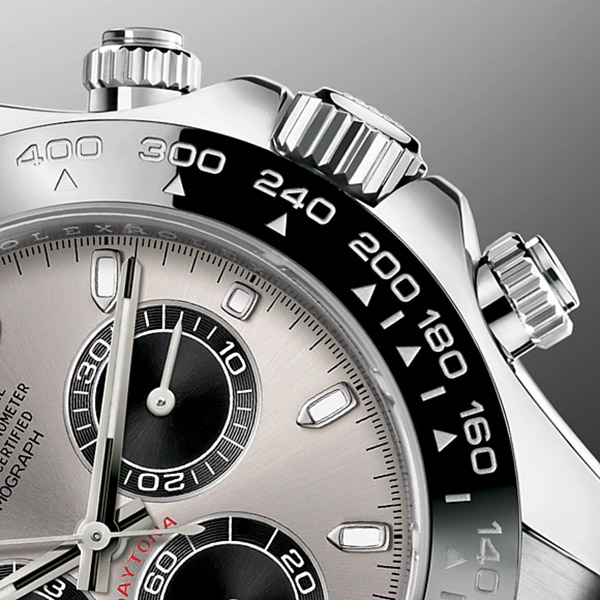 Black ceramic monobloc Cerachrom bezel and tachymeter